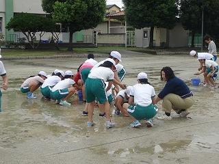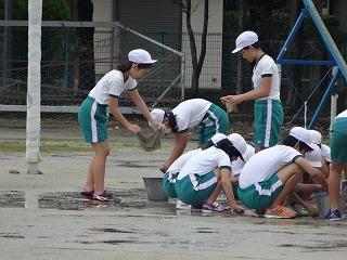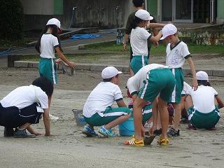 また、校庭では3年生と1年生が生き物の学習をしていました。
