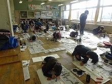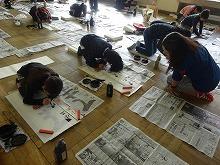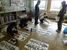 書きぞめの選手が市内書きぞめ展に向けて朝練習を行っています。