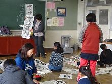 今日は書きぞめ練習の子どもたちが学校に来て、