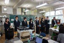 元気に登校してきた幸松っ子は、学級発表を見て、旧担任の先生方に先導されて、