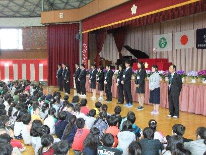 「校歌」のプレゼントです。いつものように体育館いっぱいに歌声が