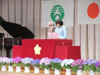 次は、1年生からのお礼の歌とあいさつです。元気よく歌うことができました。