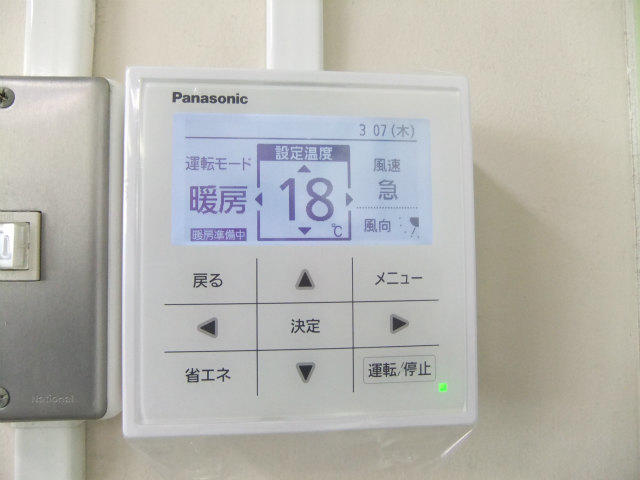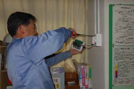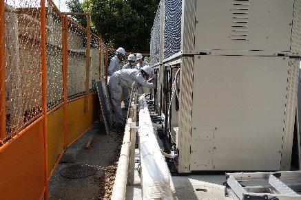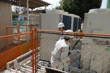 まずは、試運転のために室外機の調整を行い、集中管理のための機器を職員室に設置しました。