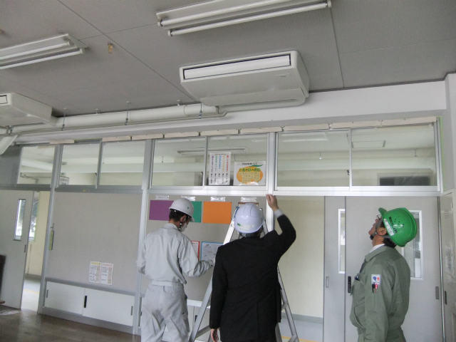 試運転も終わり、普通教室のエアコンの設置完了です。
