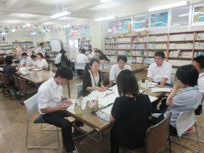 よりよい算数授業を目指して、放課後、先生たちが今日の授業をもとに研究協議を行いました。