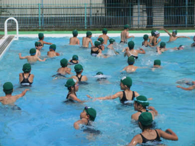 5校時、4年生が令和元年度の初泳ぎをしました。