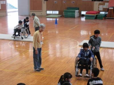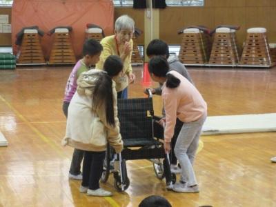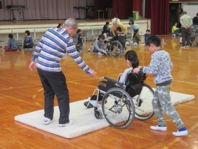 4年生が、社会福祉協議会の皆様にご指導いただき、車いすの体験をしました。