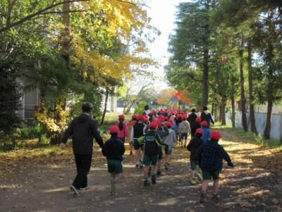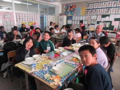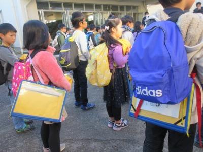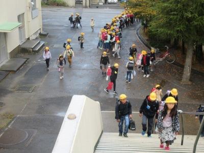 気温が下がり、風も強くなったため、予定を変更しました。一度学校に戻って昼食です。