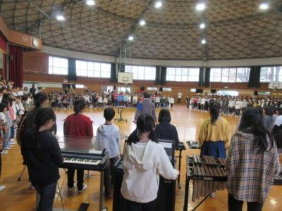 外は冷たい雨が降っていましたが、会館内は児童・生徒の歌や演奏で熱気に包まれました。
