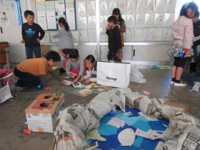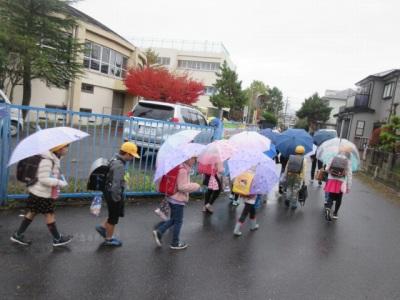 気温が下がり、風も強くなったため、予定を変更しました。一度学校に戻って昼食です。