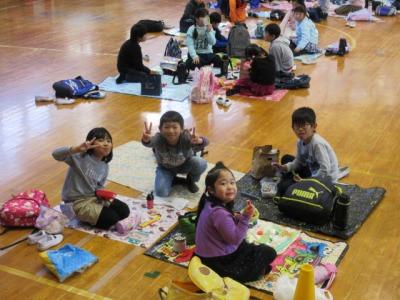 大沼運動公園でお弁当を食べる予定だった3年生。