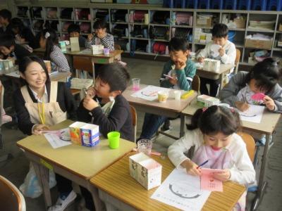 毎年、県立大学の学生さんが上手な歯みがきのしかたを教えにきてくれます。