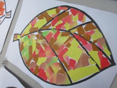 貼り絵で落ち葉を表現しています。
