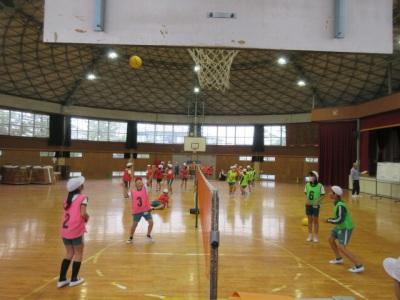 チームごとに、ソフトバレーボールの練習です。