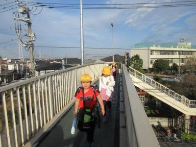 歩道橋で下校
