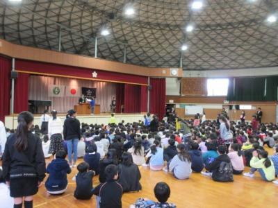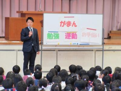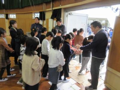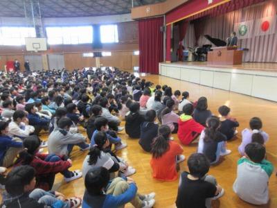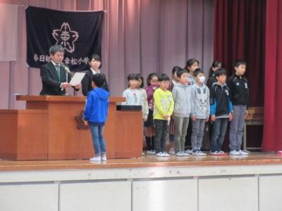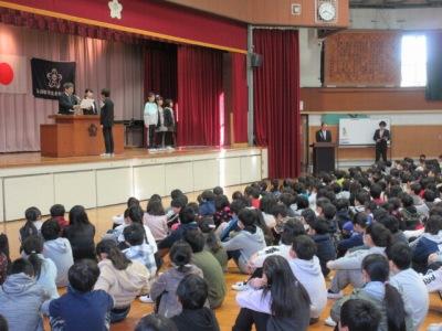 科学展、持久走大会、人権作文、家庭の日ポスターコンクール、美術展、歯・口の健康に関するポスターコンクールの表彰がありました。