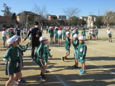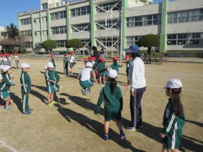 今日の元気タイムでは、低学年の長なわ大会を行いました。