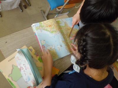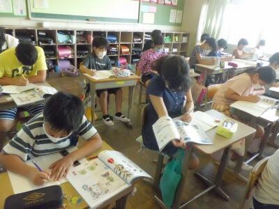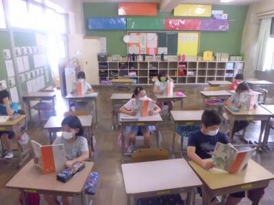 今日は天気がいいので、図書室に来る児童は少なめです。