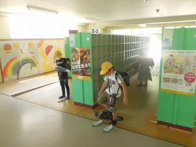 1年生は、上履きに履き替えるのに苦戦しているようです。