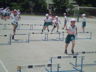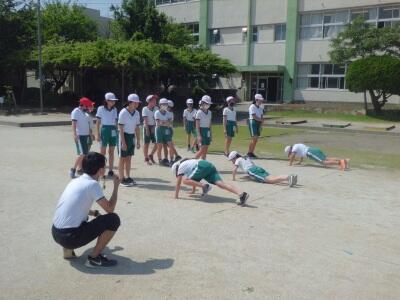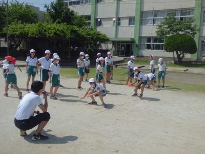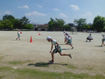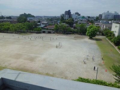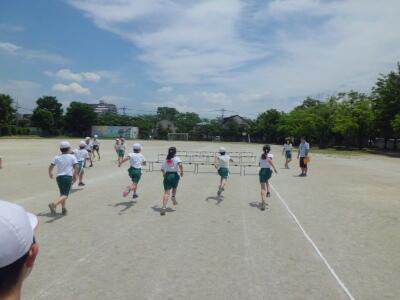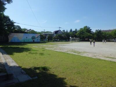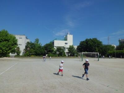 校庭は少し湿った状態ですが、みんな元気に走り回っていました。