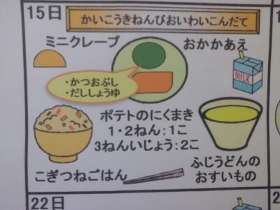 献立表です。今日はチキンのレモンソテーやミネストローネなどが出ます。