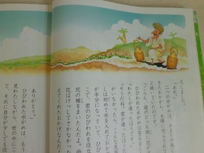 「花をさかせた水がめの話」(インドの民話)を読みました。