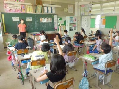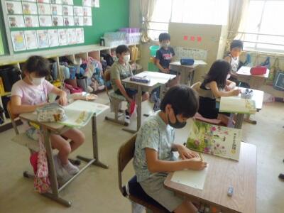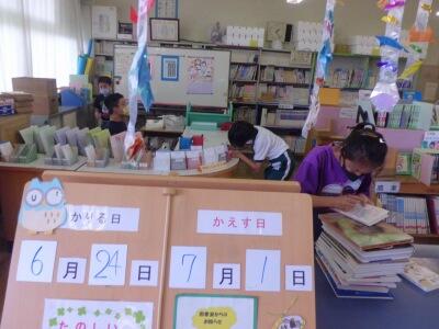 今日は天気がいいので、図書室に来る児童は少なめです。