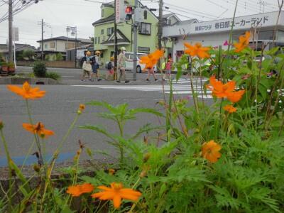 道端に咲くきれいな花を見つけました。