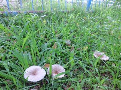 プールの脇に、不思議なきのこを見つけました。