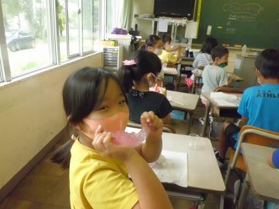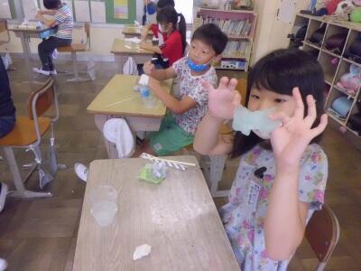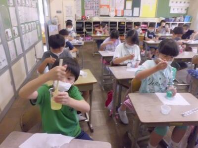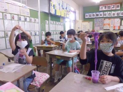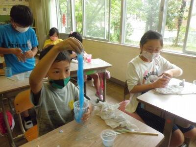 学期末の学級レクで、スライム作りに挑戦しました。