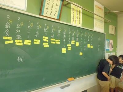 1学期のほけん係の子が、2学期のほけん係に黒板の記入の仕方を教えてくれました。