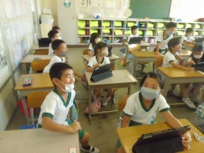 先生のモニター画面に自分たちの姿が映っていたので、みんな驚いていました。
