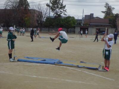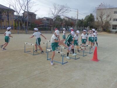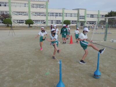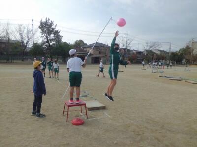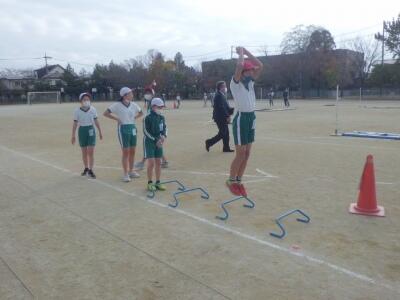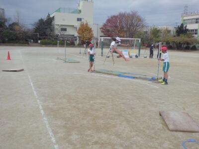 はじめに、走り高跳びの感覚づくりの運動をします。