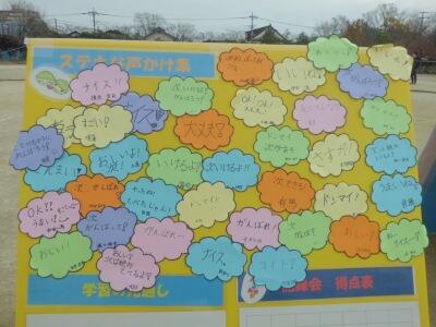 練習中、友達からかけてもらってうれしかった言葉やアドバイスを掲示しています。