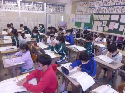 1週間の疲れが出てくるころですが、静かに国語の学習をしていました。