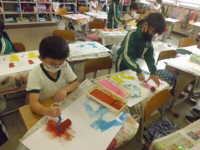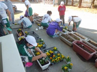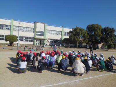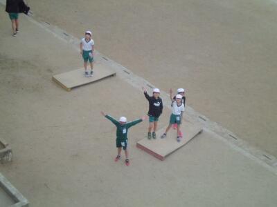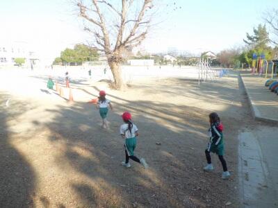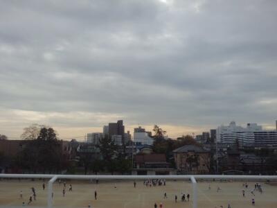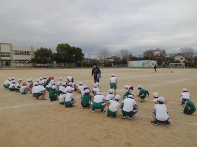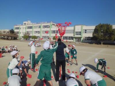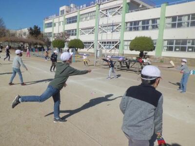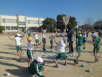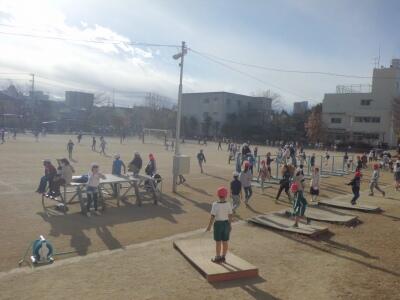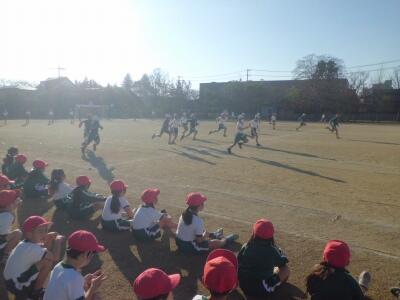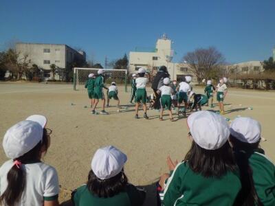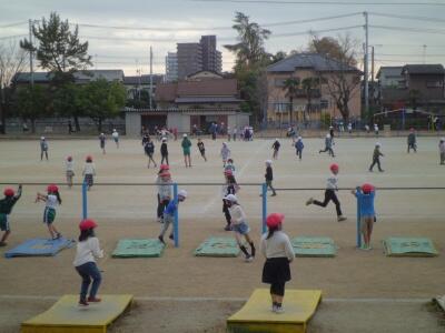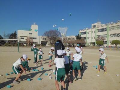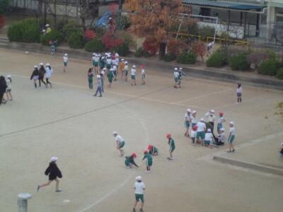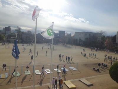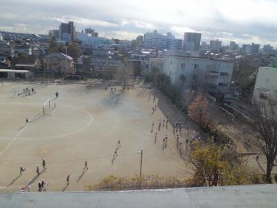 校庭に出ると、6年生たちの元気な声が聞こえてきました。