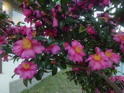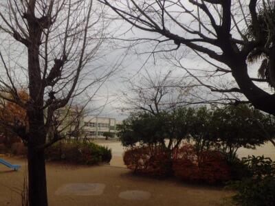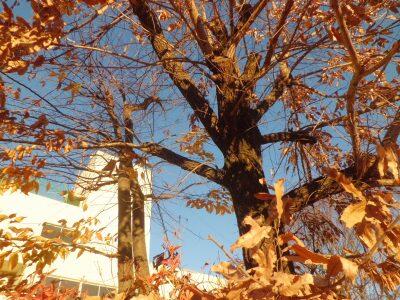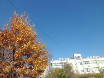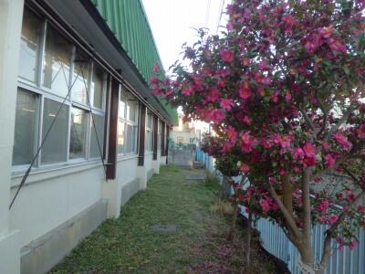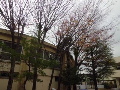 南校舎の前のもみじだけが、まだ赤い色を保っています。