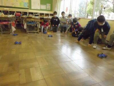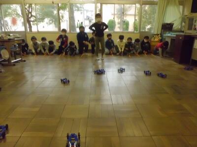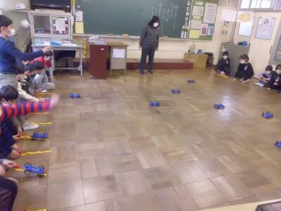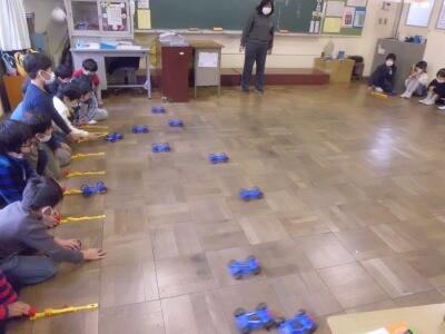 教室の反対側まで到達し、カメラマンの先生がひかれそうになってしまいました。
