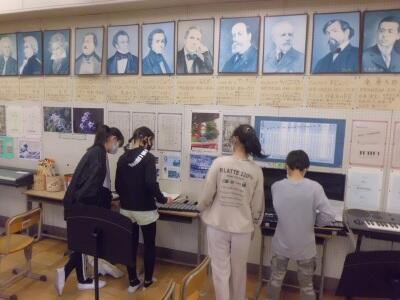 音楽室では音楽委員が今月の歌「ビリーブ」の練習をしていました。