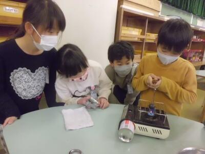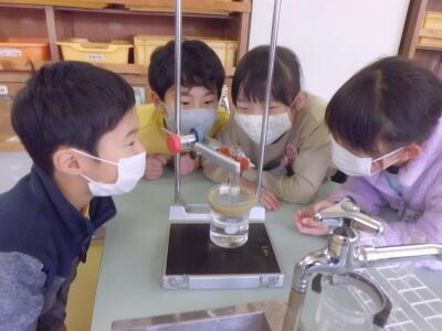 空気で実験したときとくらべると、何かわかったでしょうか。