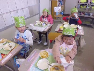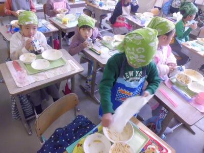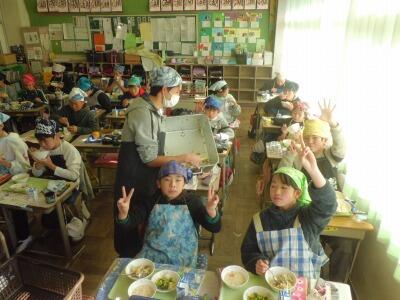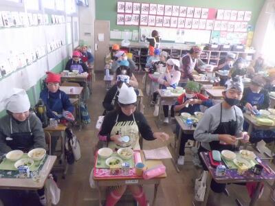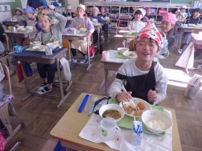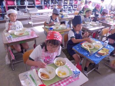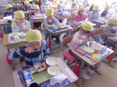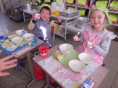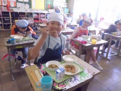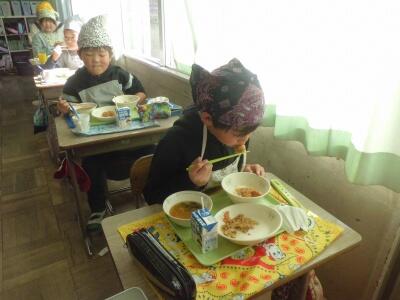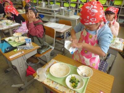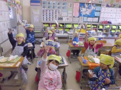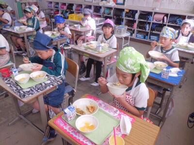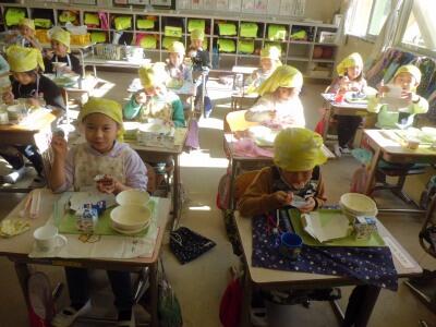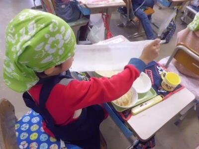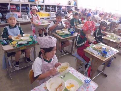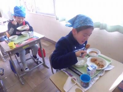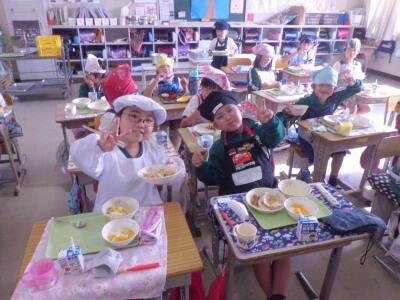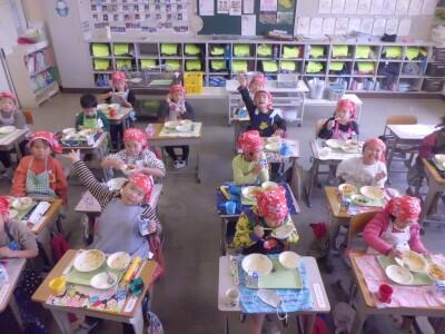 1年生も毎日しっかり給食を食べれば、5年後に6年生のようなお兄さん、お姉さんになれます。