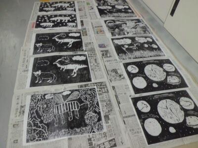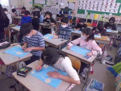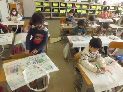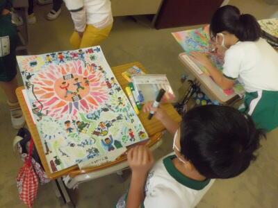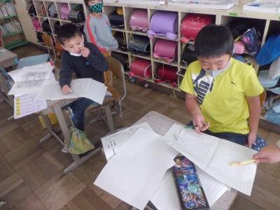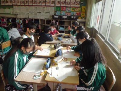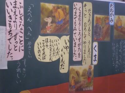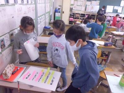 飼育委員は、ウサギ小屋に掲示するポスターを作っていました。