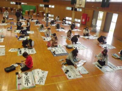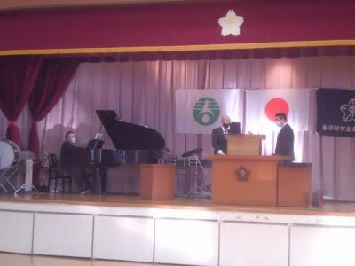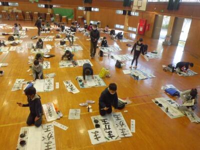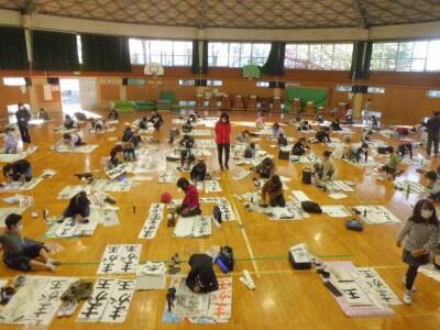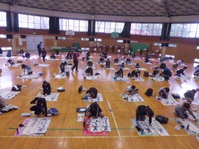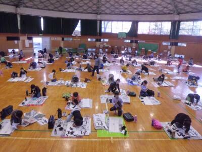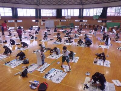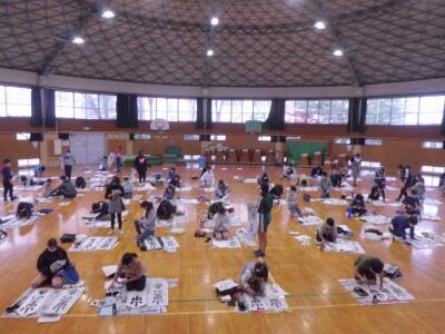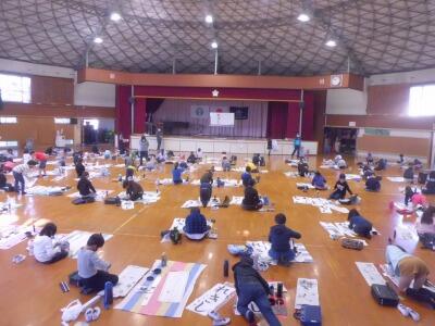 体育館で、各種美術展や科学展、持久走大会などの表彰が行われました。