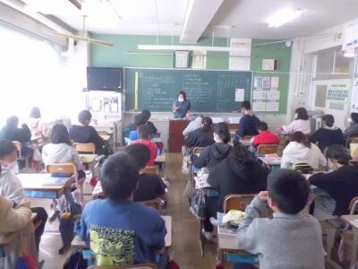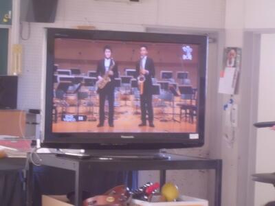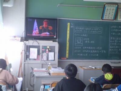 各教室のテレビ画面で校長先生のお話を聞きました。