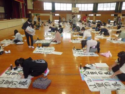今年は新型コロナウイルス感染拡大を避けるため、体育館で十分な距離をとってかるたをすることになりました。