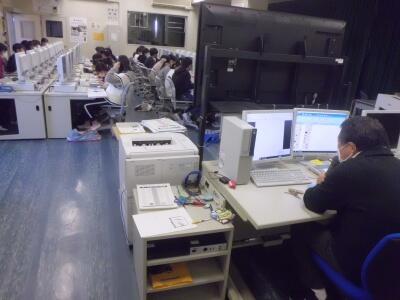 体育館では、オンライン終業式に向けて準備が進められていました。