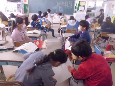 どんな内容を付け加えると物語がおもしろくなるかを、グループごとに話し合いました。