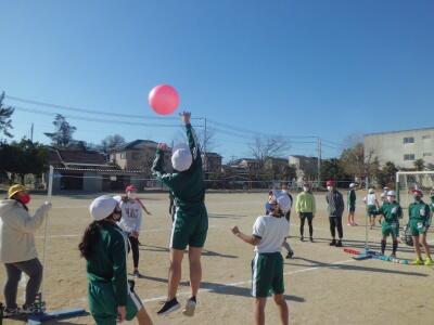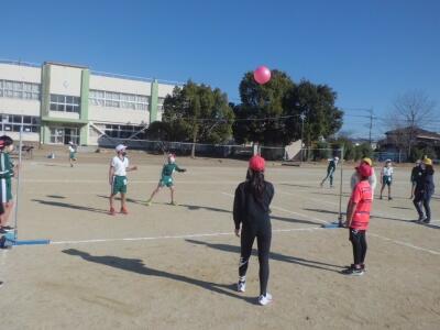 冬の青空の下、ソフトバレーボールを楽しみました。