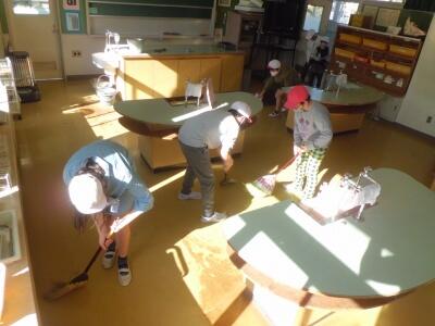 理科室。広い幸松小には、ほかにもたくさんのそうじ場所があります。