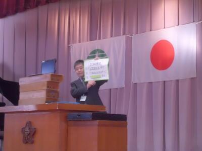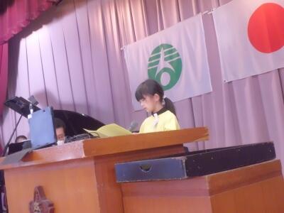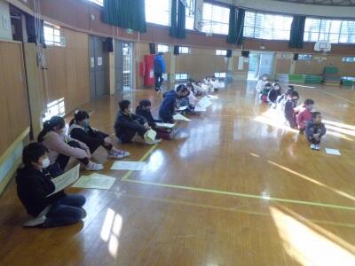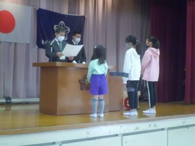 体育館で、各種美術展や科学展、持久走大会などの表彰が行われました。